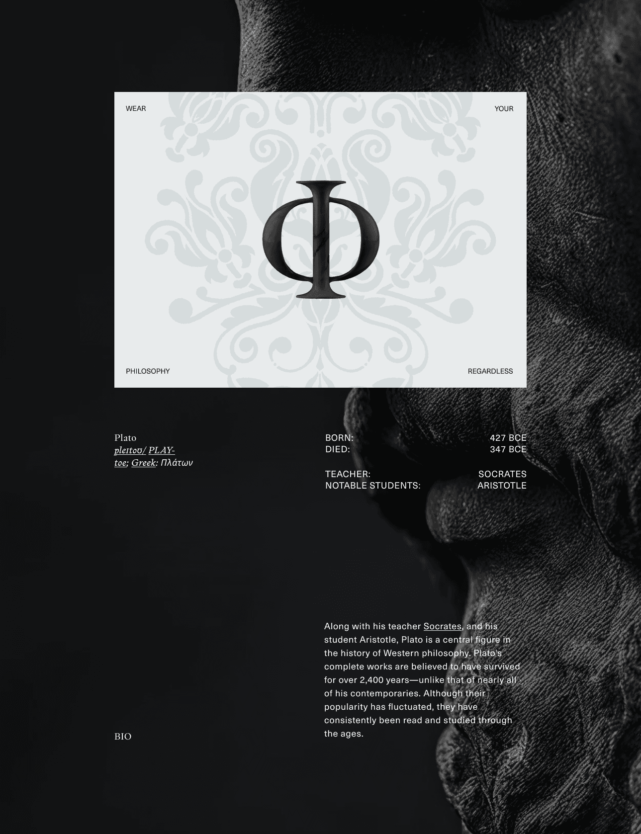 Philosofia is a clothing & lifestyle brand driven by Philosophy and fine art. Finally, people have the chance to wear the philosophies that fuel their life in style.