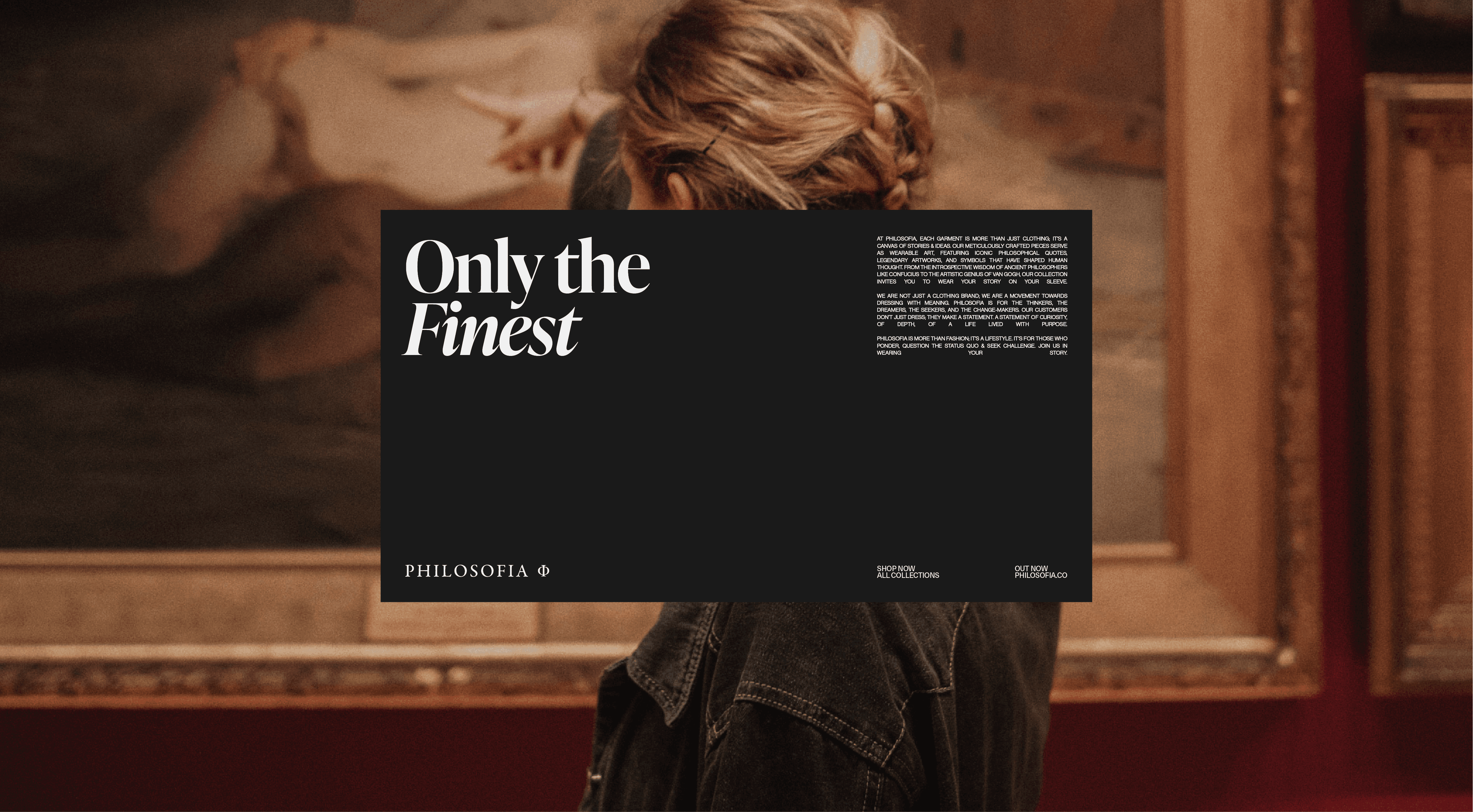 Tired of seeing cheap graphics for profound quotes and fine art being treated like rubbish, Philosofia wanted to give their audience a way to proudly represent their lifestyle.